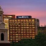 Parking at the Omni Hotel at Yale is primarily available via on-site valet ($30 per night) or the attached Chapel Square Garage (155 Temple St) for $25 per night. The garage offers covered self-parking with 24/7 access, while valet provides unlimited in/out privileges. Charging stations are available for electric cars.
